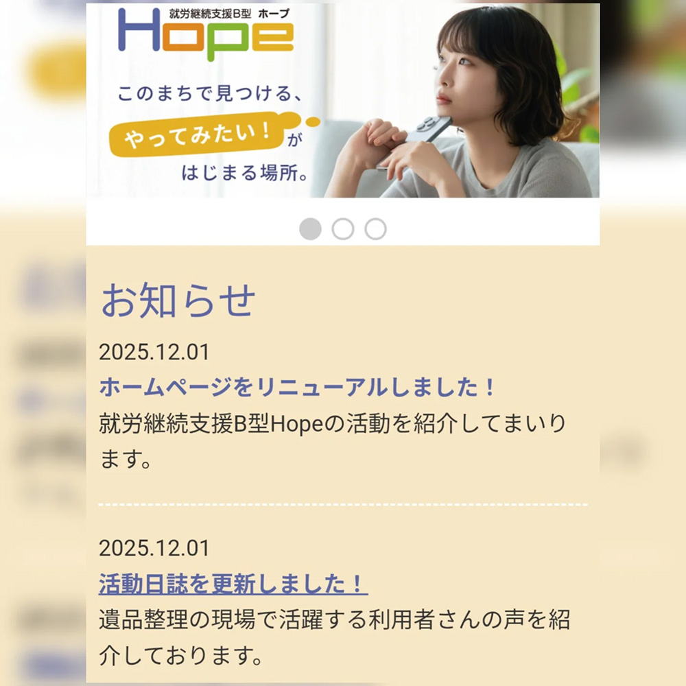 就労継続支援B型Hopeでは日々の作業のようすや、地域とのふれあい、ちょっとした出来事などを発信しています。