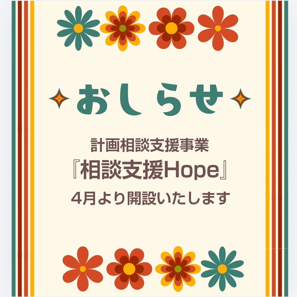 4月より計画相談支援事業『相談支援Hope』開設いたします✨